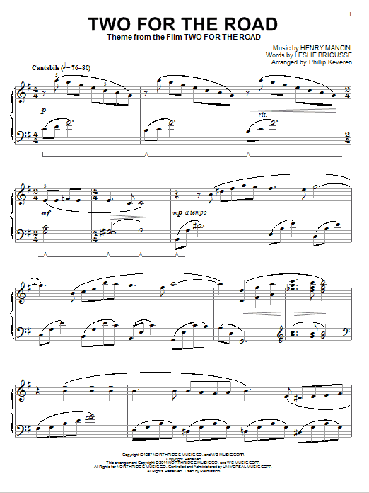 Quick facts Two For The Road (arr. Phillip Keveren) about digital sheet music