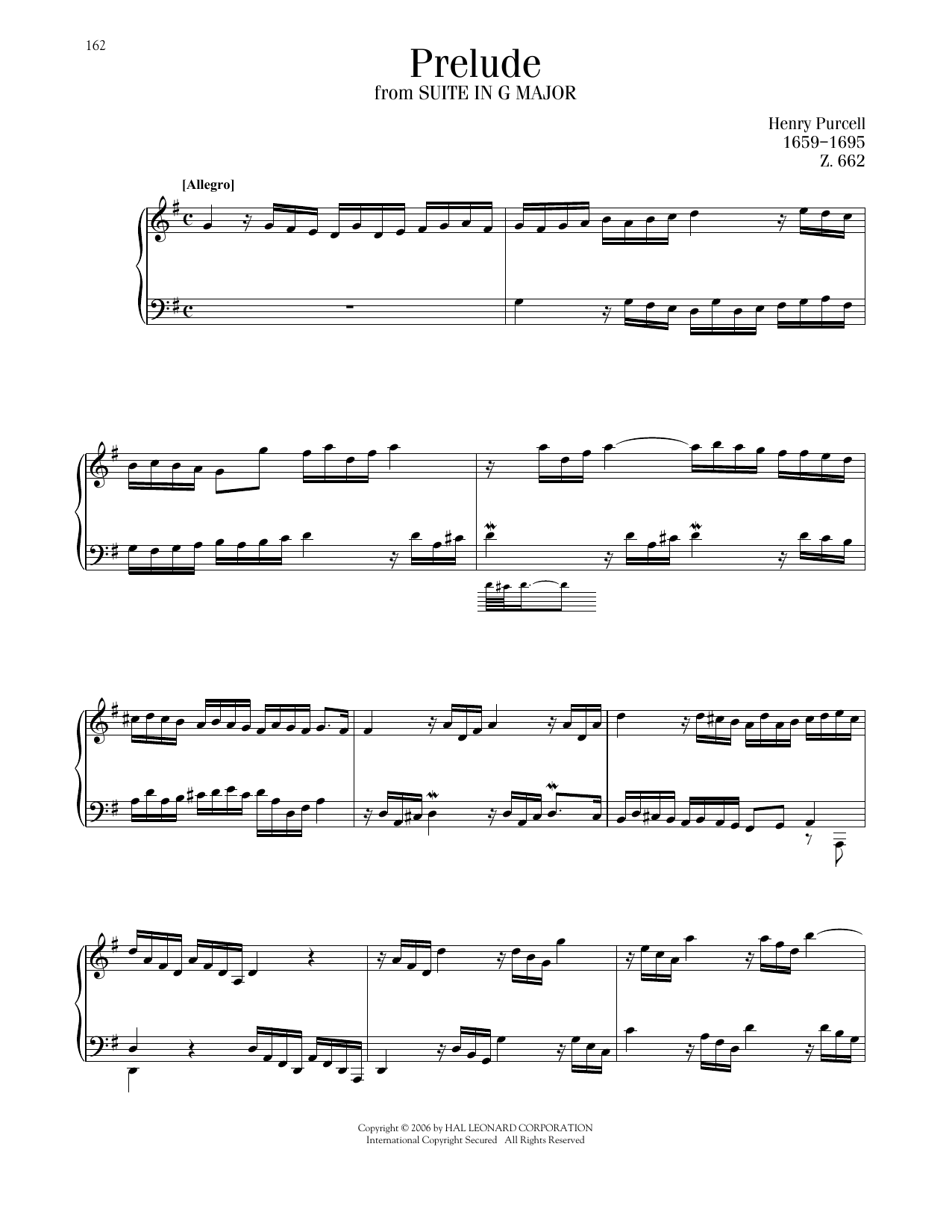Download or print Henry Purcell Prelude, Suite No. 1 In G Major sheet music, chords and digital score arranged for Piano Solo. This Classical score includes 2 page(s).