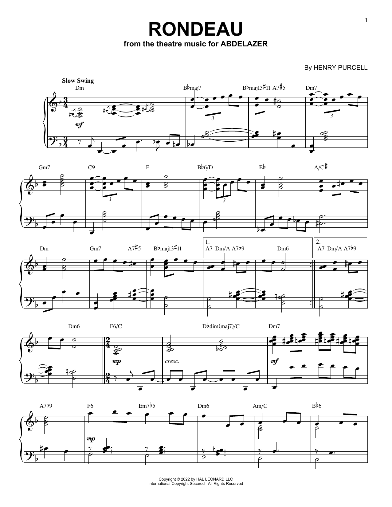 Download or print Henry Purcell Rondeau [Jazz version] (arr. Brent Edstrom) sheet music, chords and digital score arranged for Piano Solo. This Classical score includes 3 page(s).
