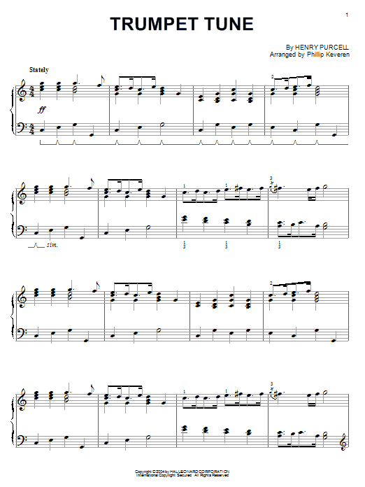 Download or print Henry Purcell Trumpet Tune (arr. Phillip Keveren) sheet music, chords and digital score arranged for Piano Solo. This Classical score includes 2 page(s).