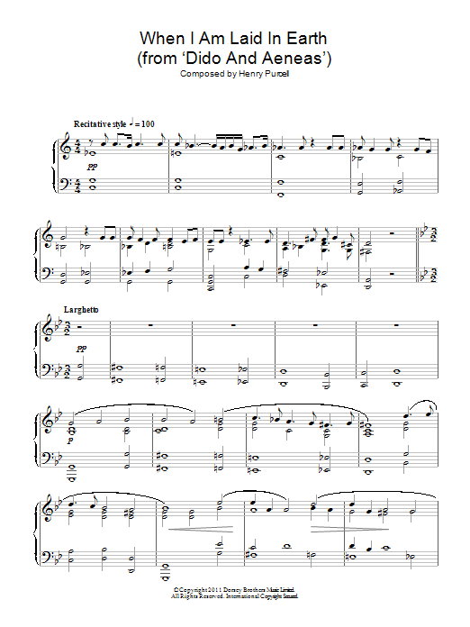 Download or print Henry Purcell When I Am Laid In Earth sheet music, chords and digital score arranged for Easy Piano. This Opera score includes 3 page(s).