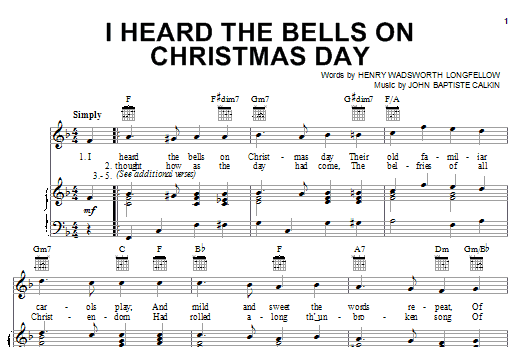 Download or print Henry Wadsworth Longfellow I Heard The Bells On Christmas Day sheet music, chords and digital score arranged for Piano Solo. This Christmas score includes 2 page(s).