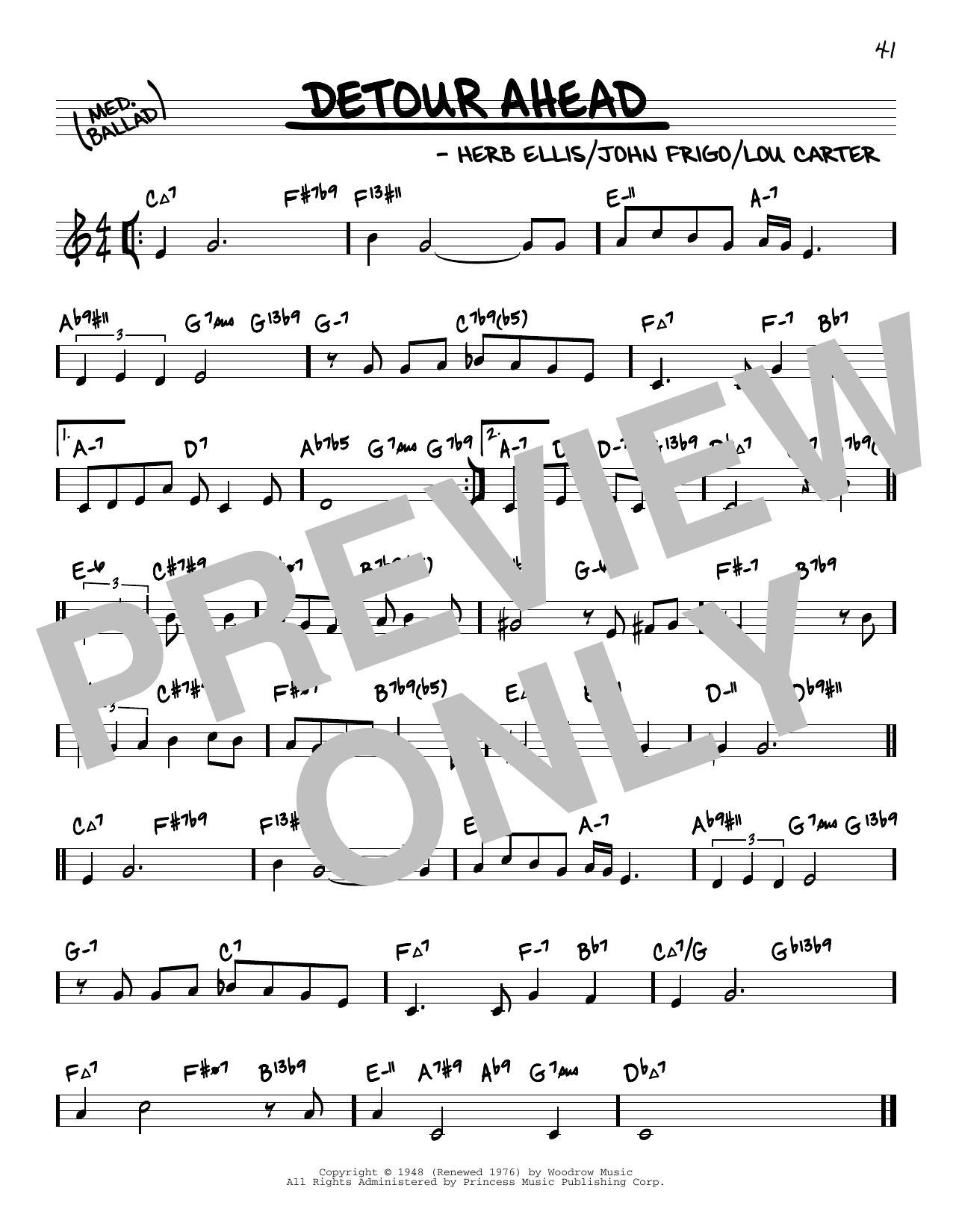 Download or print Herb Ellis Detour Ahead (arr. David Hazeltine) sheet music, chords and digital score arranged for Real Book – Enhanced Chords. This Jazz score includes 1 page(s).