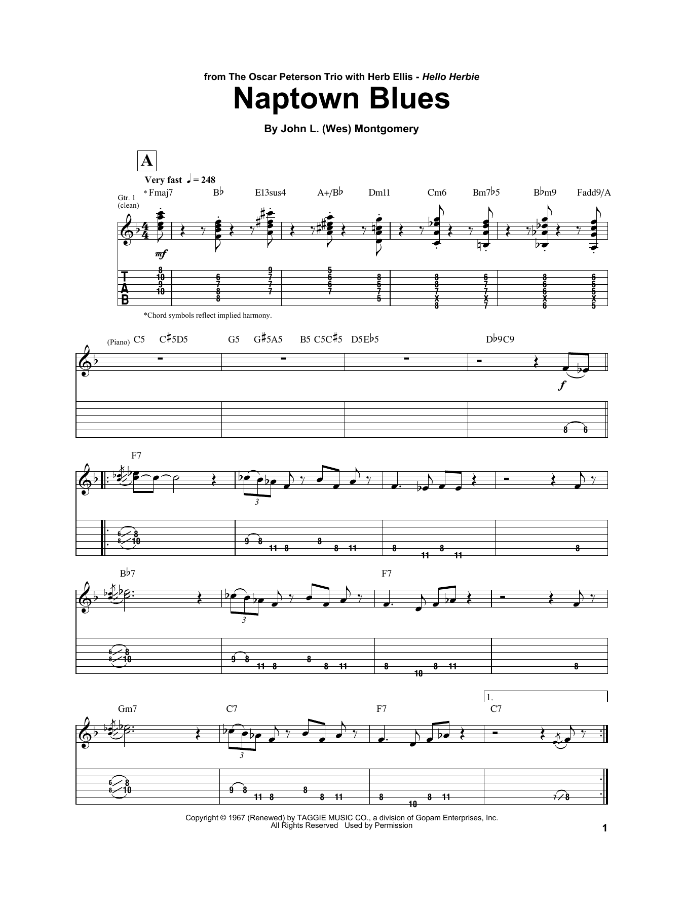 Download or print Herb Ellis Naptown Blues sheet music, chords and digital score arranged for Electric Guitar Transcription. This Jazz score includes 12 page(s).