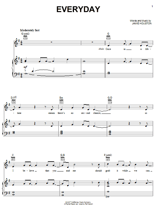 Download or print High School Musical 2 Everyday sheet music, chords and digital score arranged for Big Note Piano. This Disney score includes 11 page(s).
