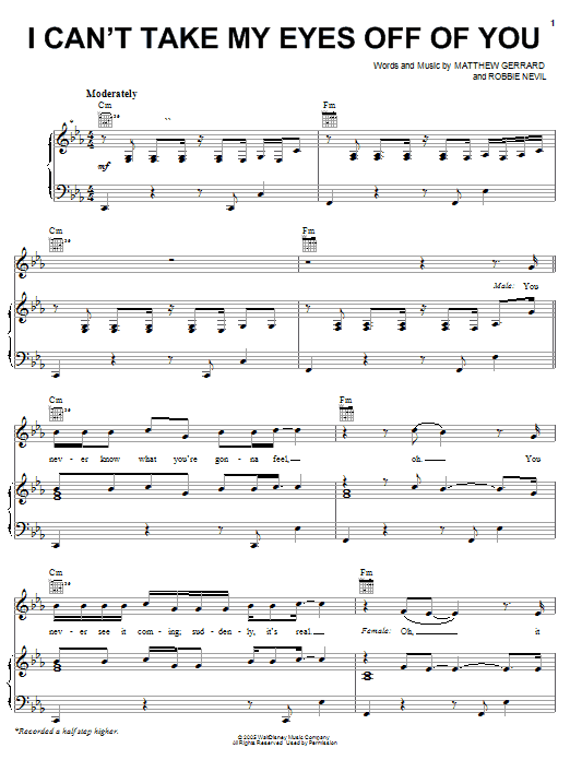 Download or print High School Musical I Can't Take My Eyes Off Of You sheet music, chords and digital score arranged for Easy Piano. This Children score includes 9 page(s).