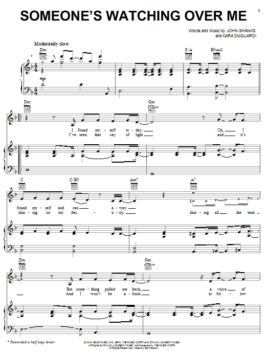 Download or print Hilary Duff Someone's Watching Over Me sheet music, chords and digital score arranged for Piano, Vocal & Guitar Chords (Right-Hand Melody). This Pop score includes 6 page(s).