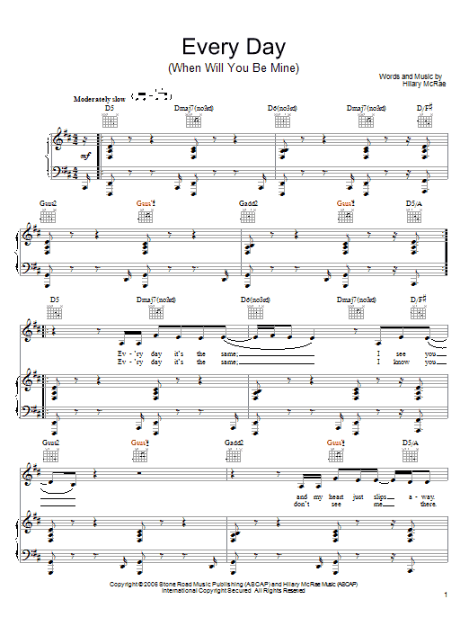 Download or print Hilary McRae Every Day (When Will You Be Mine) sheet music, chords and digital score arranged for Piano, Vocal & Guitar Chords (Right-Hand Melody). This Pop score includes 5 page(s).