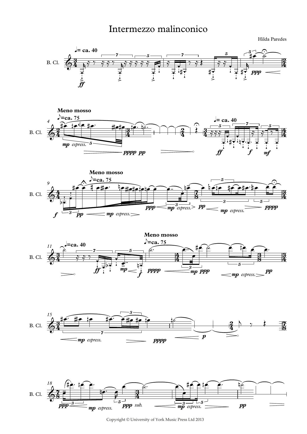 Download or print Hilda Paredes Intermezzo Malinconico sheet music, chords and digital score arranged for Woodwind Solo. This Classical score includes 11 page(s).