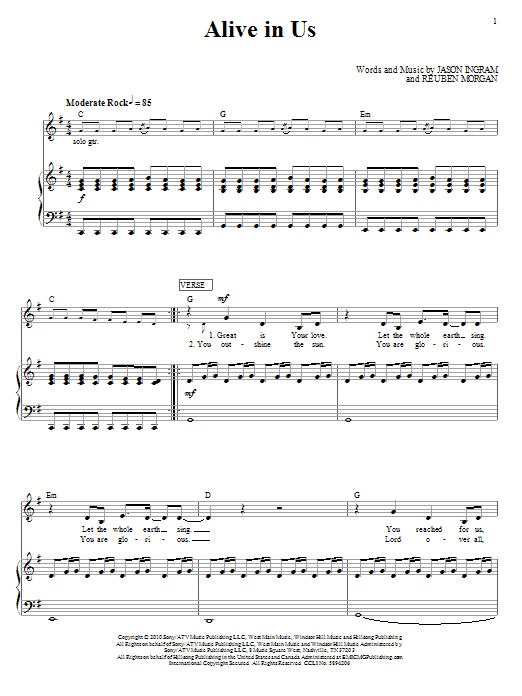 Download or print Hillsong United Alive In Us sheet music, chords and digital score arranged for Piano, Vocal & Guitar Chords (Right-Hand Melody). This Christian score includes 5 page(s).