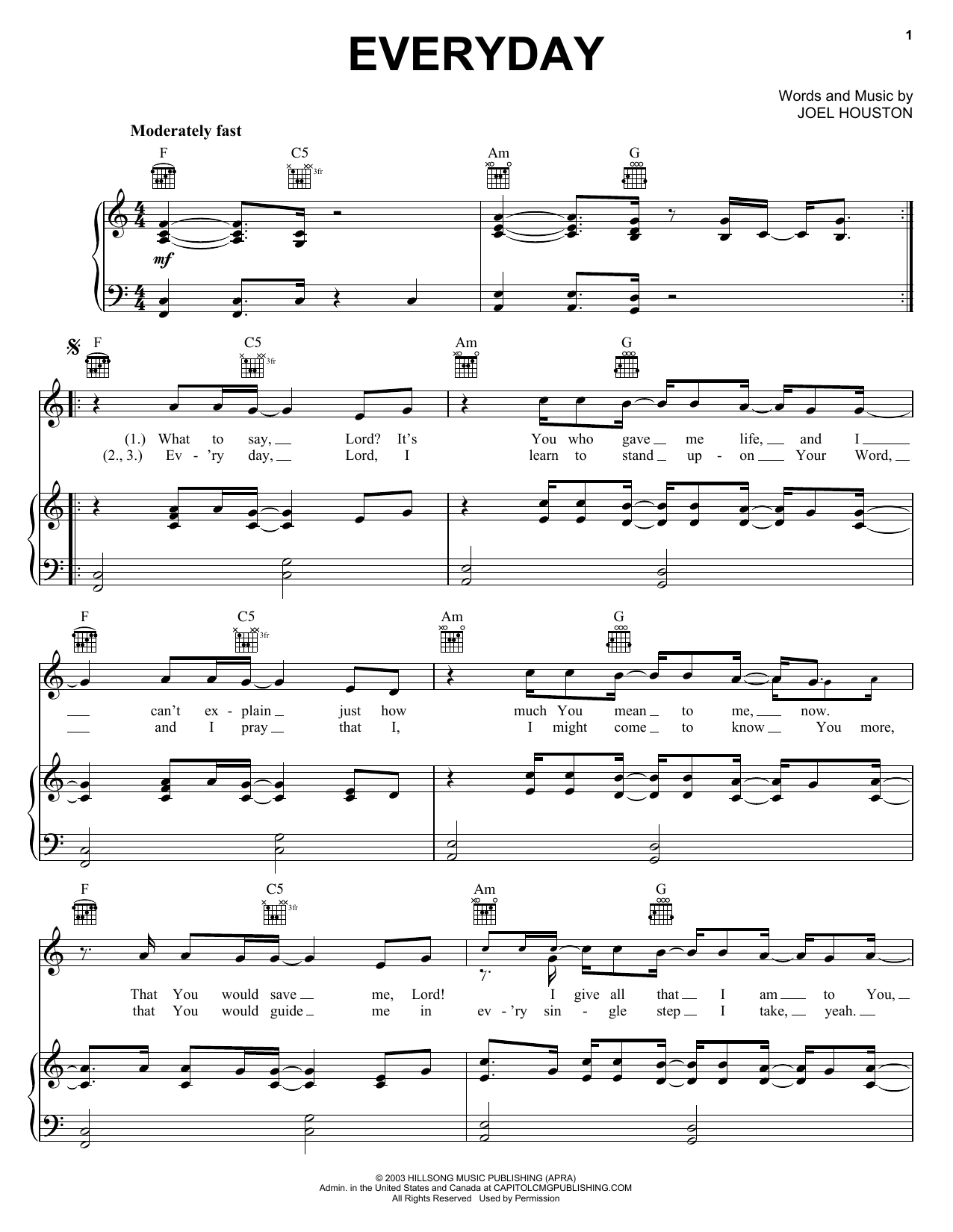 Download or print Hillsong United Everyday sheet music, chords and digital score arranged for Easy Guitar Tab. This Christian score includes 3 page(s).
