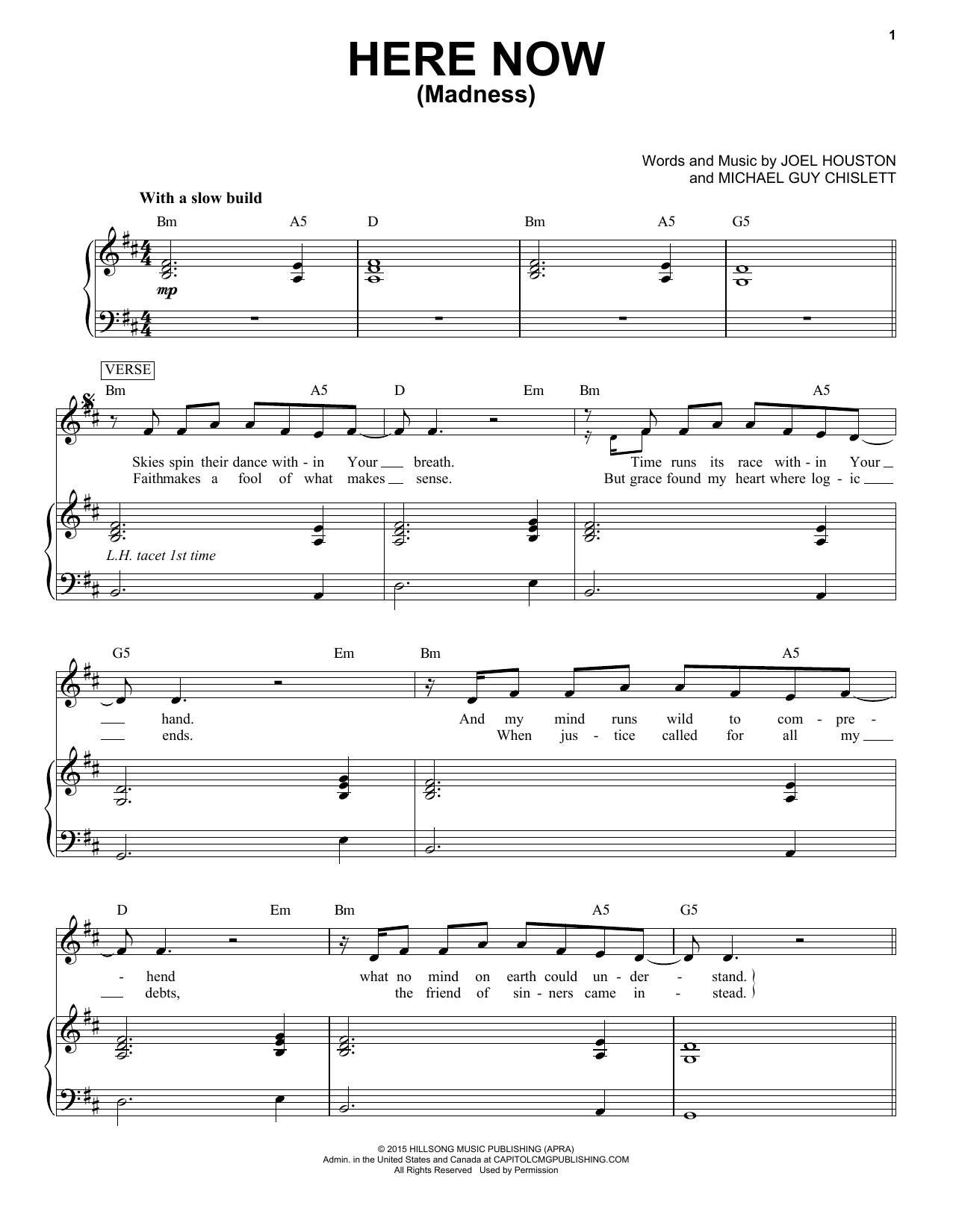 Download or print Hillsong United Here Now (Madness) sheet music, chords and digital score arranged for Piano & Vocal. This Christian score includes 7 page(s).