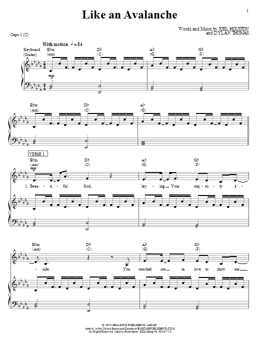 Download or print Hillsong United Like An Avalanche sheet music, chords and digital score arranged for Piano, Vocal & Guitar Chords (Right-Hand Melody). This Christian score includes 7 page(s).