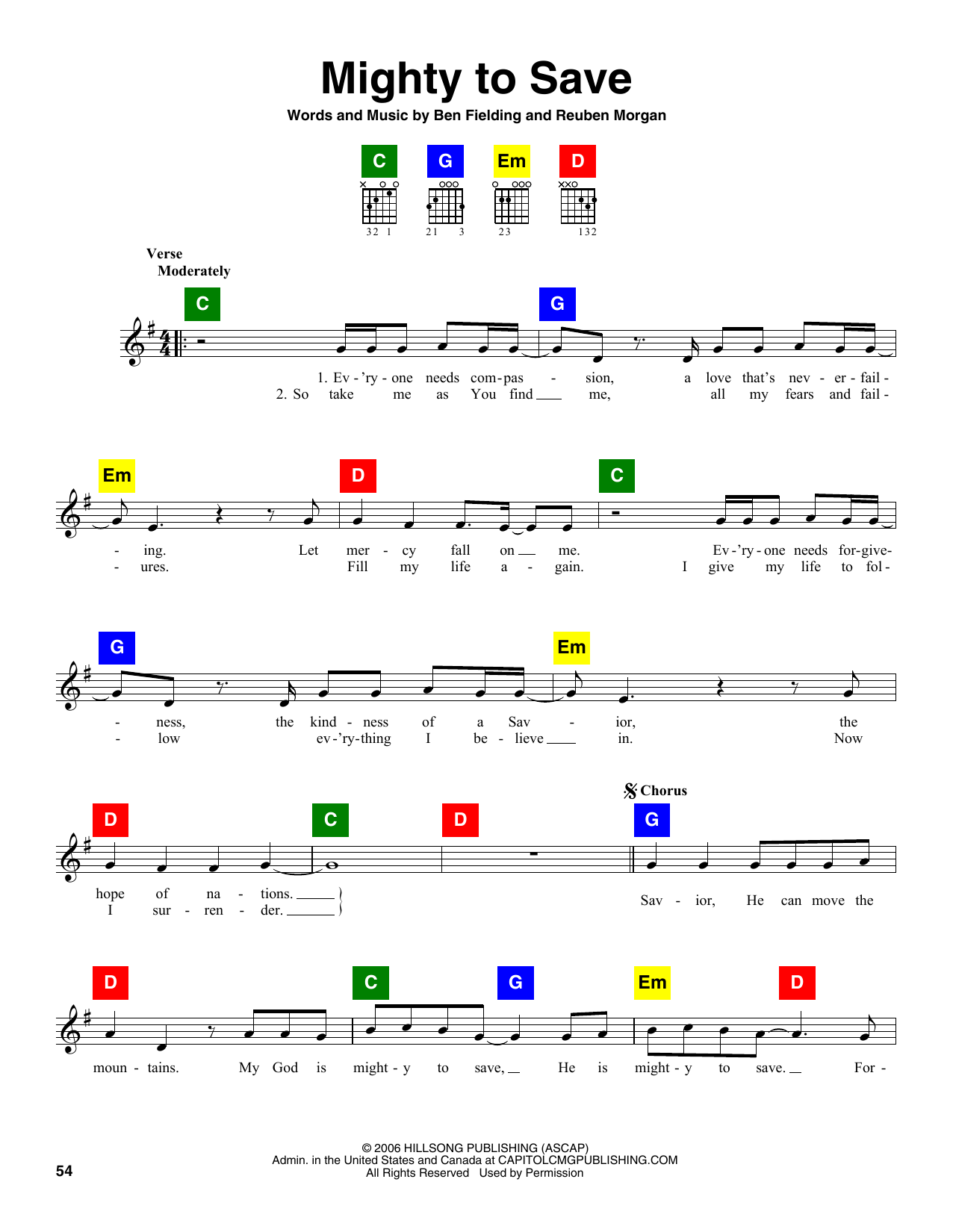 Download or print Hillsong United Mighty To Save sheet music, chords and digital score arranged for ChordBuddy. This Praise & Worship score includes 2 page(s).