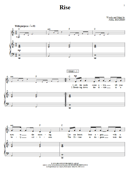 Download or print Hillsong United Rise sheet music, chords and digital score arranged for Piano, Vocal & Guitar Chords (Right-Hand Melody). This Pop score includes 9 page(s).