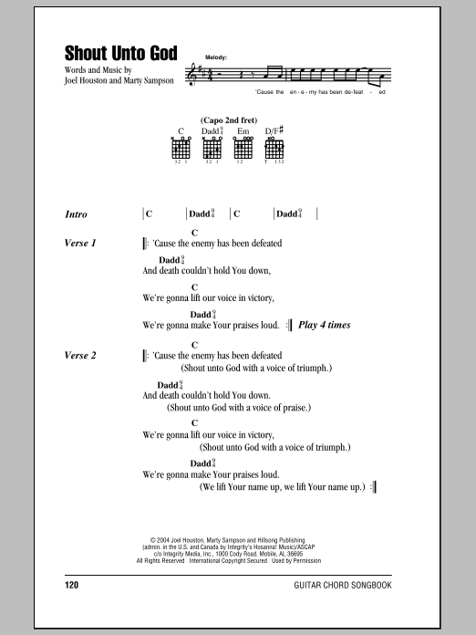 Download or print Hillsong United Shout Unto God sheet music, chords and digital score arranged for Easy Guitar Tab. This Christian score includes 3 page(s).