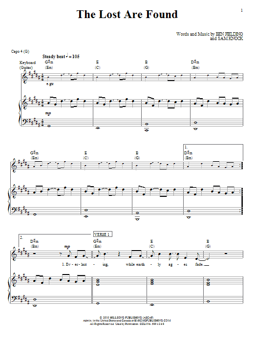 Download or print Hillsong United The Lost Are Found sheet music, chords and digital score arranged for Piano, Vocal & Guitar Chords (Right-Hand Melody). This Pop score includes 6 page(s).