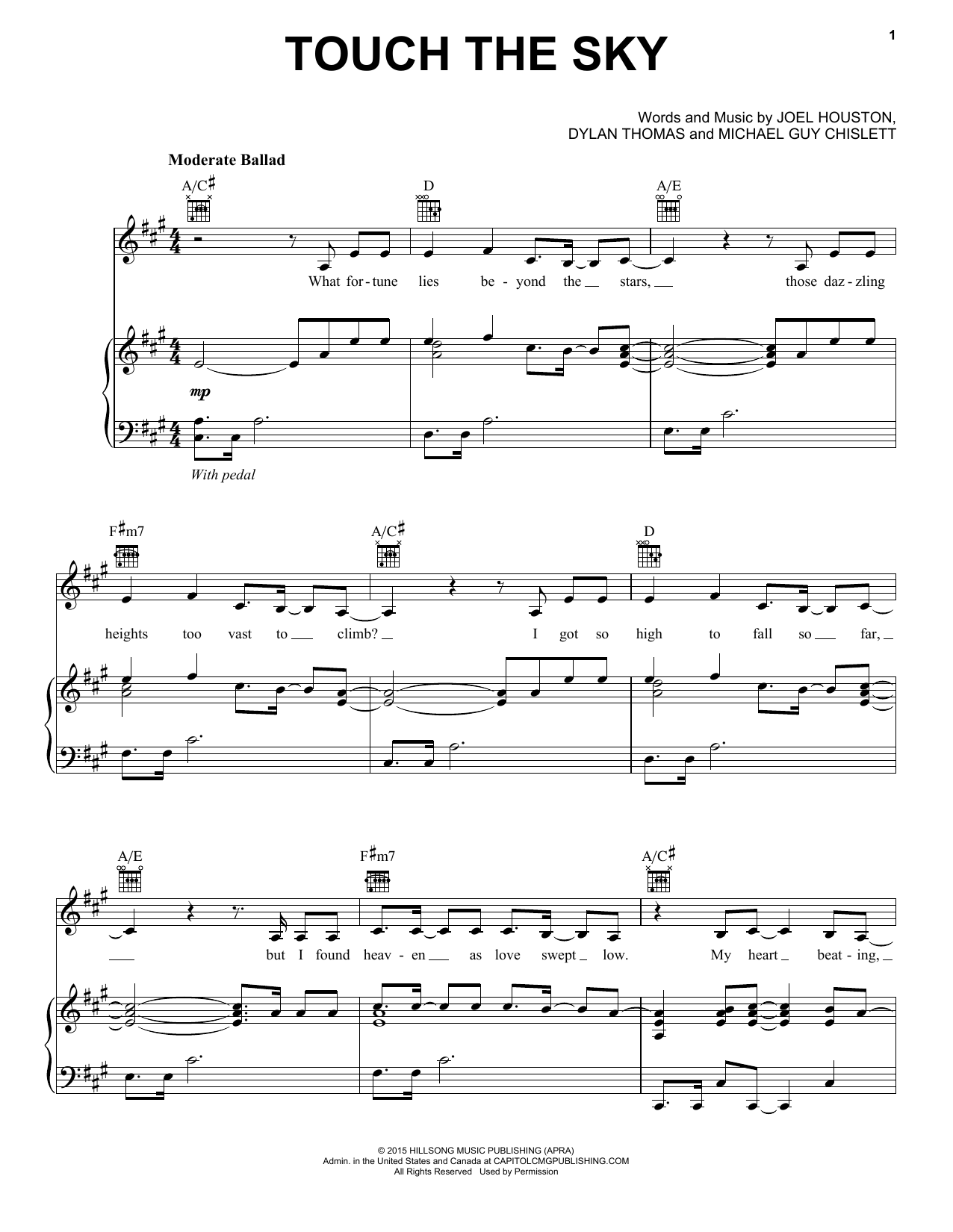 Download or print Hillsong United Touch The Sky sheet music, chords and digital score arranged for Piano, Vocal & Guitar Chords (Right-Hand Melody). This Pop score includes 8 page(s).
