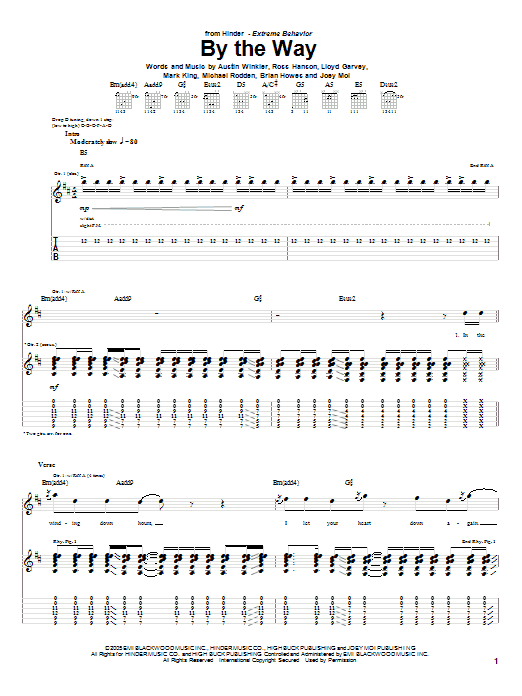 Download or print Hinder By The Way sheet music, chords and digital score arranged for Guitar Tab. This Pop score includes 10 page(s).