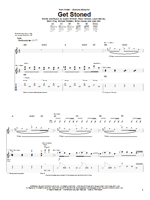 Download or print Hinder Get Stoned sheet music, chords and digital score arranged for Guitar Tab. This Pop score includes 9 page(s).
