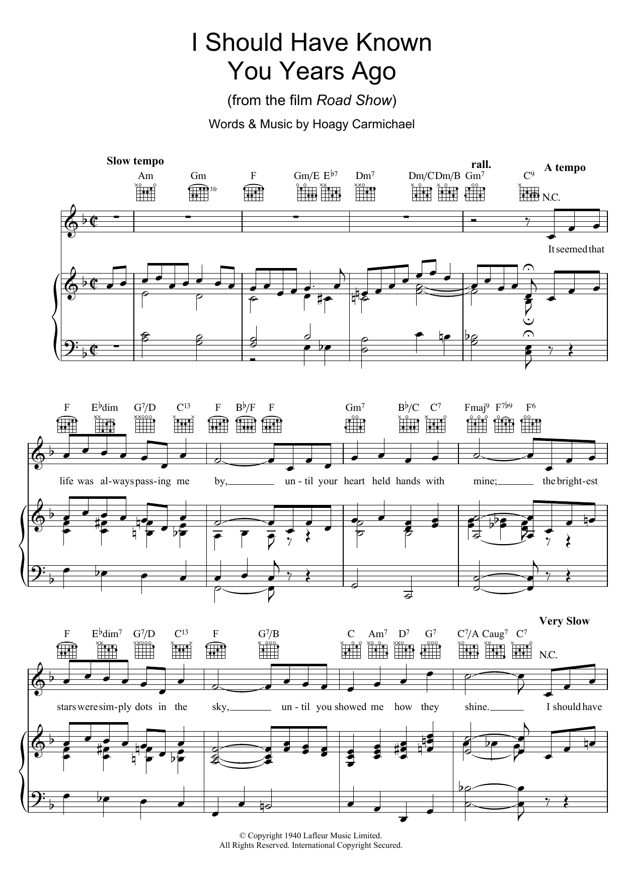 Download or print Hoagy Carmichael I Should Have Known You Years Ago sheet music, chords and digital score arranged for Piano, Vocal & Guitar Chords. This Standards score includes 4 page(s).