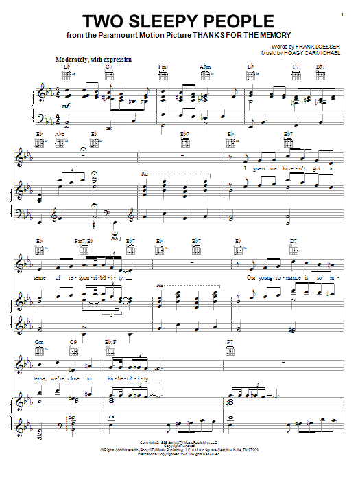 Download or print Hoagy Carmichael Two Sleepy People sheet music, chords and digital score arranged for Piano, Vocal & Guitar Chords (Right-Hand Melody). This Standards score includes 4 page(s).