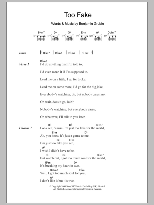 Download or print Hockey Too Fake sheet music, chords and digital score arranged for Guitar Chords/Lyrics. This Rock score includes 3 page(s).