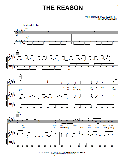 Download or print Hoobastank The Reason sheet music, chords and digital score arranged for Easy Piano. This Rock score includes 4 page(s).