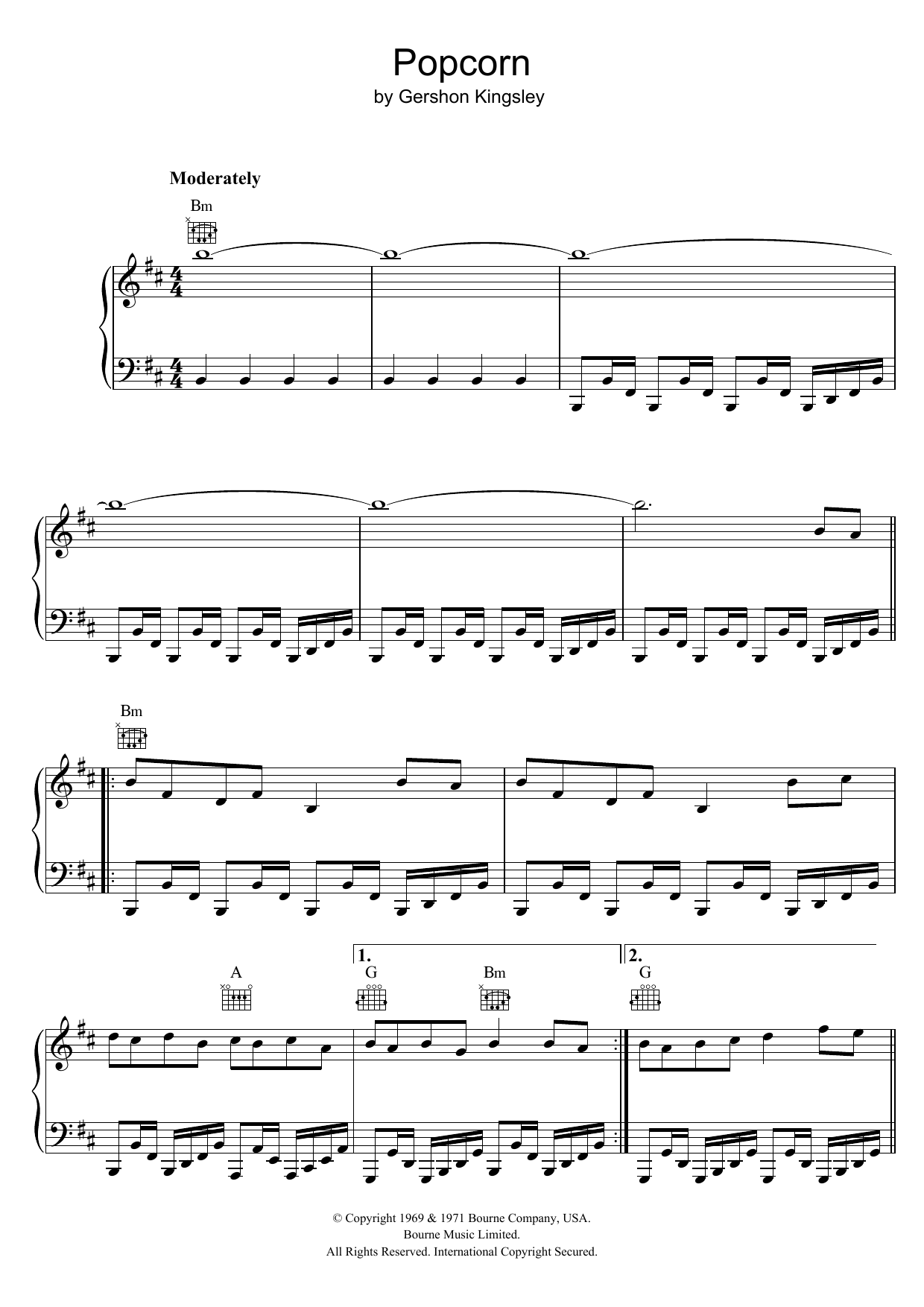 Download or print Hot Butter Popcorn sheet music, chords and digital score arranged for Piano Solo. This Pop score includes 4 page(s).