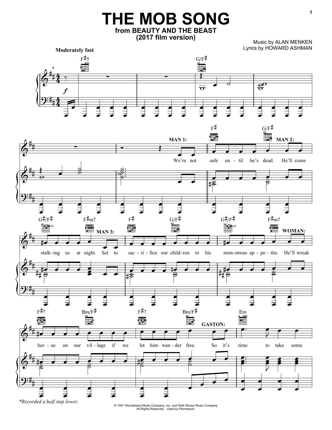 Download or print Beauty and the Beast Cast The Mob Song (from Beauty And The Beast) sheet music, chords and digital score arranged for Piano Solo. This Disney score includes 3 page(s).