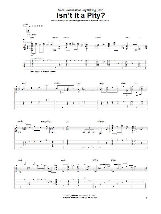 Download or print Howard Alden Isn't It A Pity? sheet music, chords and digital score arranged for Guitar Tab. This Jazz score includes 7 page(s).