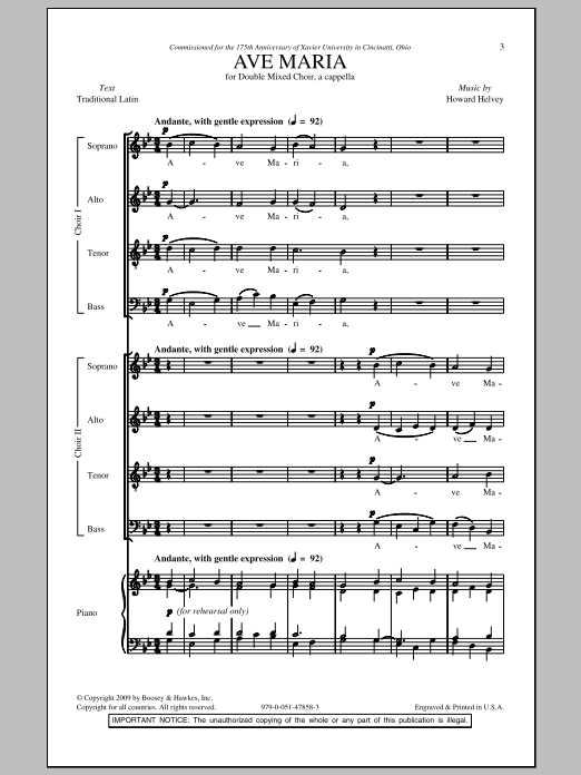 Download or print Howard Helvey Ave Maria sheet music, chords and digital score arranged for SATB Choir. This Concert score includes 15 page(s).