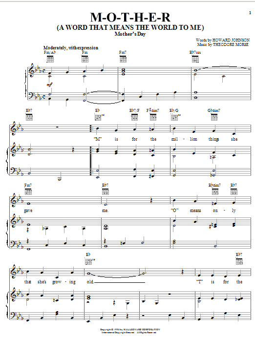 Quick facts M-O-T-H-E-R (A Word That Means The World To Me) about digital sheet music