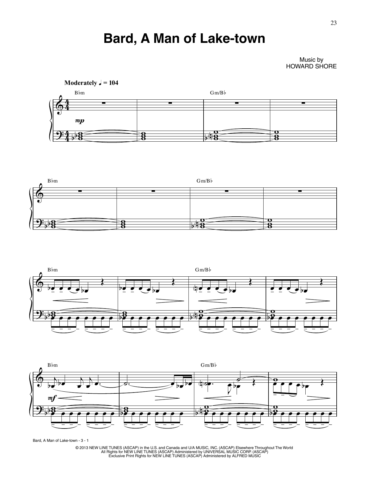 Download or print Howard Shore Bard, A Man Of Lake-Town (from The Hobbit: The Desolation of Smaug) sheet music, chords and digital score arranged for Piano Solo. This Film/TV score includes 3 page(s).