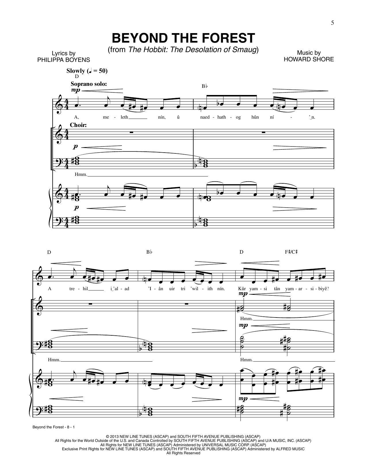 Download or print Howard Shore Beyond The Forest (from The Hobbit: The Desolation of Smaug) sheet music, chords and digital score arranged for Piano & Vocal. This Film/TV score includes 8 page(s).