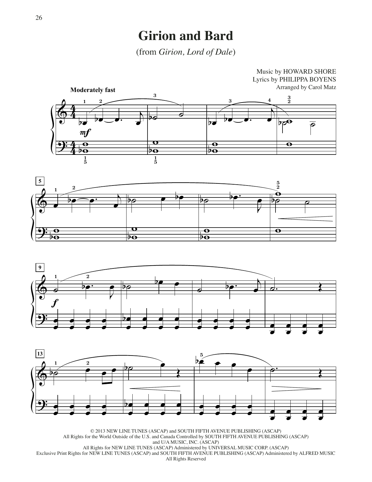 Download or print Howard Shore Girion And Bard (from The Hobbit: The Desolation of Smaug) (arr. Carol Matz) sheet music, chords and digital score arranged for Big Note Piano. This Film/TV score includes 2 page(s).