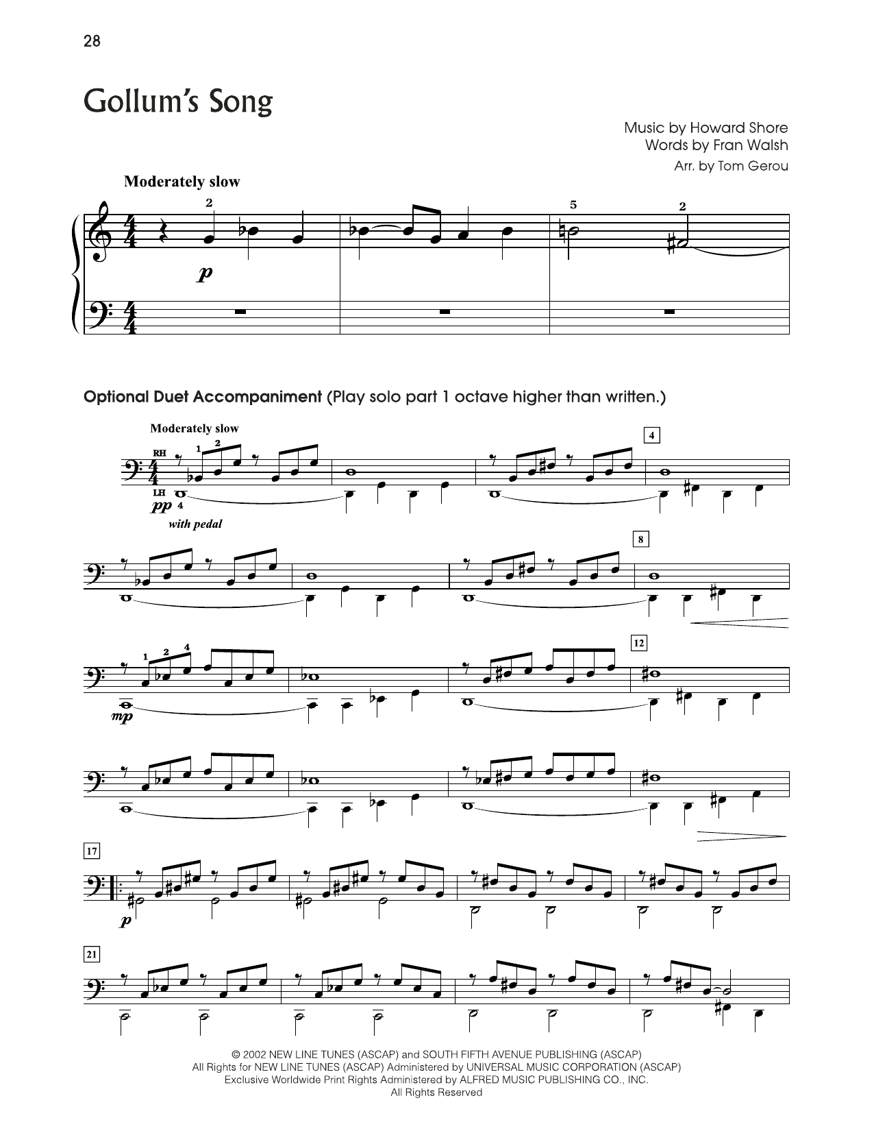 Quick facts Gollum's Song (from The Lord Of The Rings) (arr. Tom Gerou) about digital sheet music