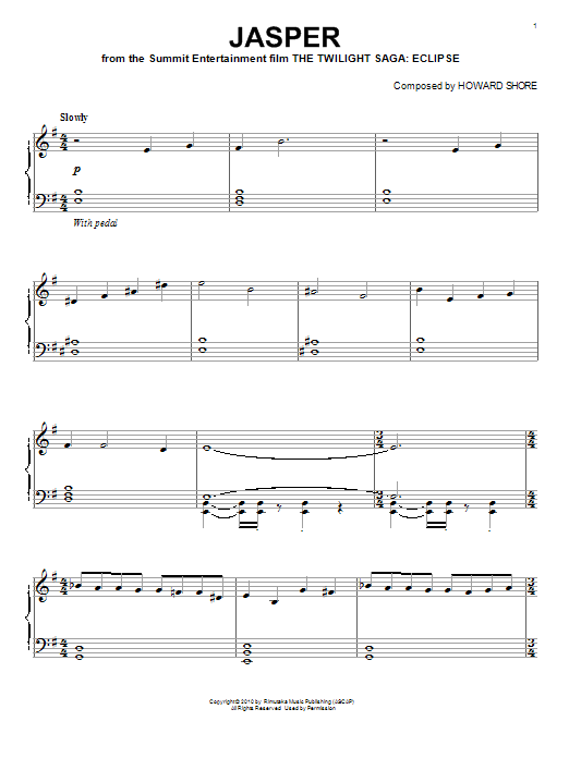 Download or print Howard Shore Jasper sheet music, chords and digital score arranged for Big Note Piano. This Pop score includes 3 page(s).