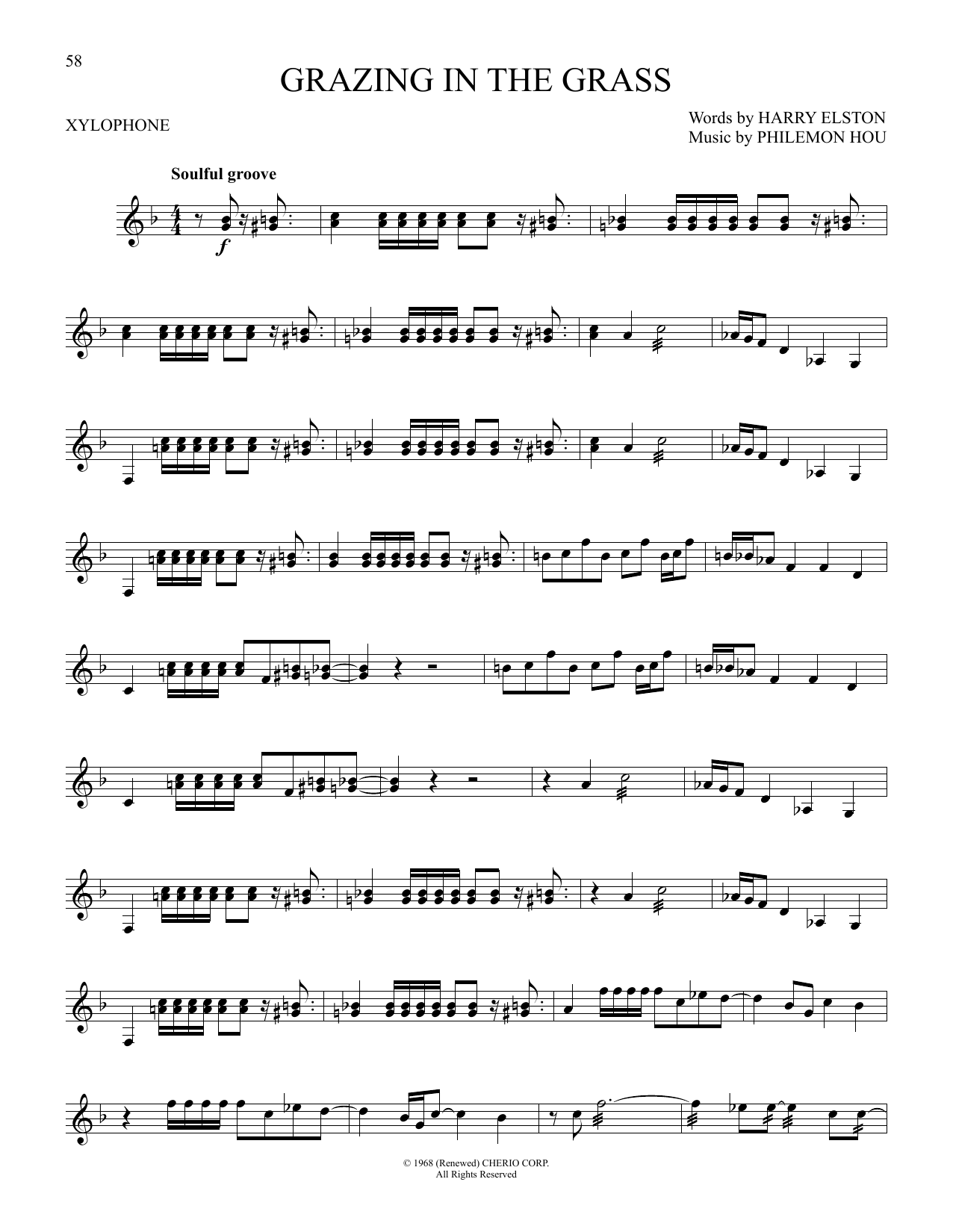 Download or print Hugh Masekela Grazing In The Grass sheet music, chords and digital score arranged for Xylophone Solo. This Jazz score includes 2 page(s).