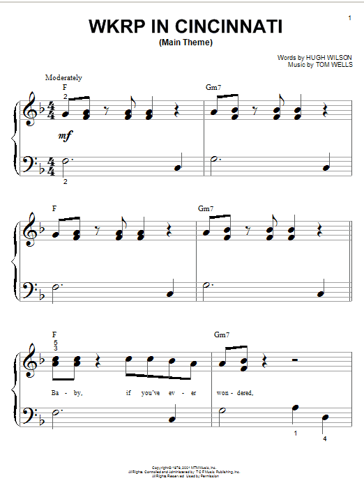 Download or print Hugh Wilson WKRP In Cincinnati (Main Theme) sheet music, chords and digital score arranged for Big Note Piano. This Rock score includes 3 page(s).