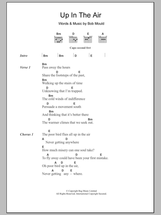Download or print Husker Du Up In The Air sheet music, chords and digital score arranged for Guitar Chords/Lyrics. This Rock score includes 2 page(s).