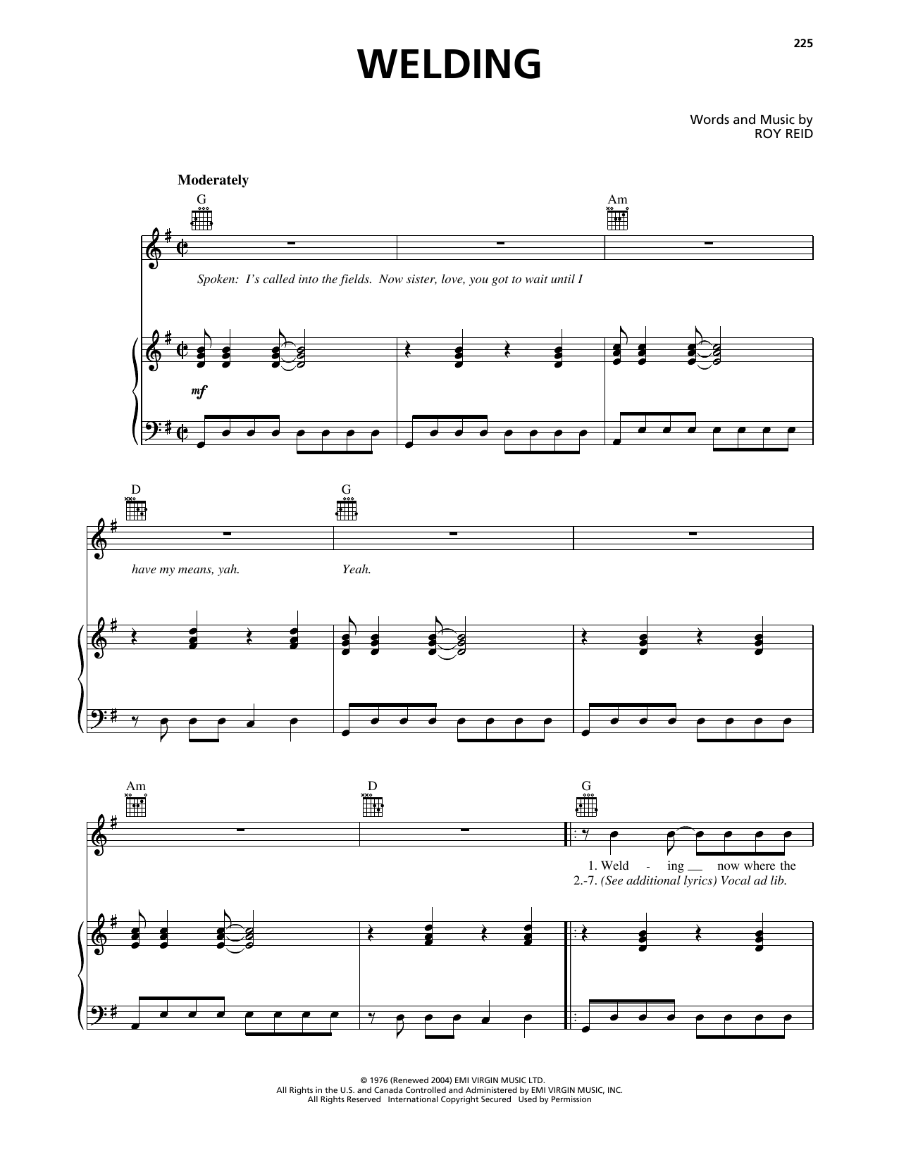 Download or print I-Roy Welding sheet music, chords and digital score arranged for Piano, Vocal & Guitar Chords (Right-Hand Melody). This Reggae score includes 3 page(s).