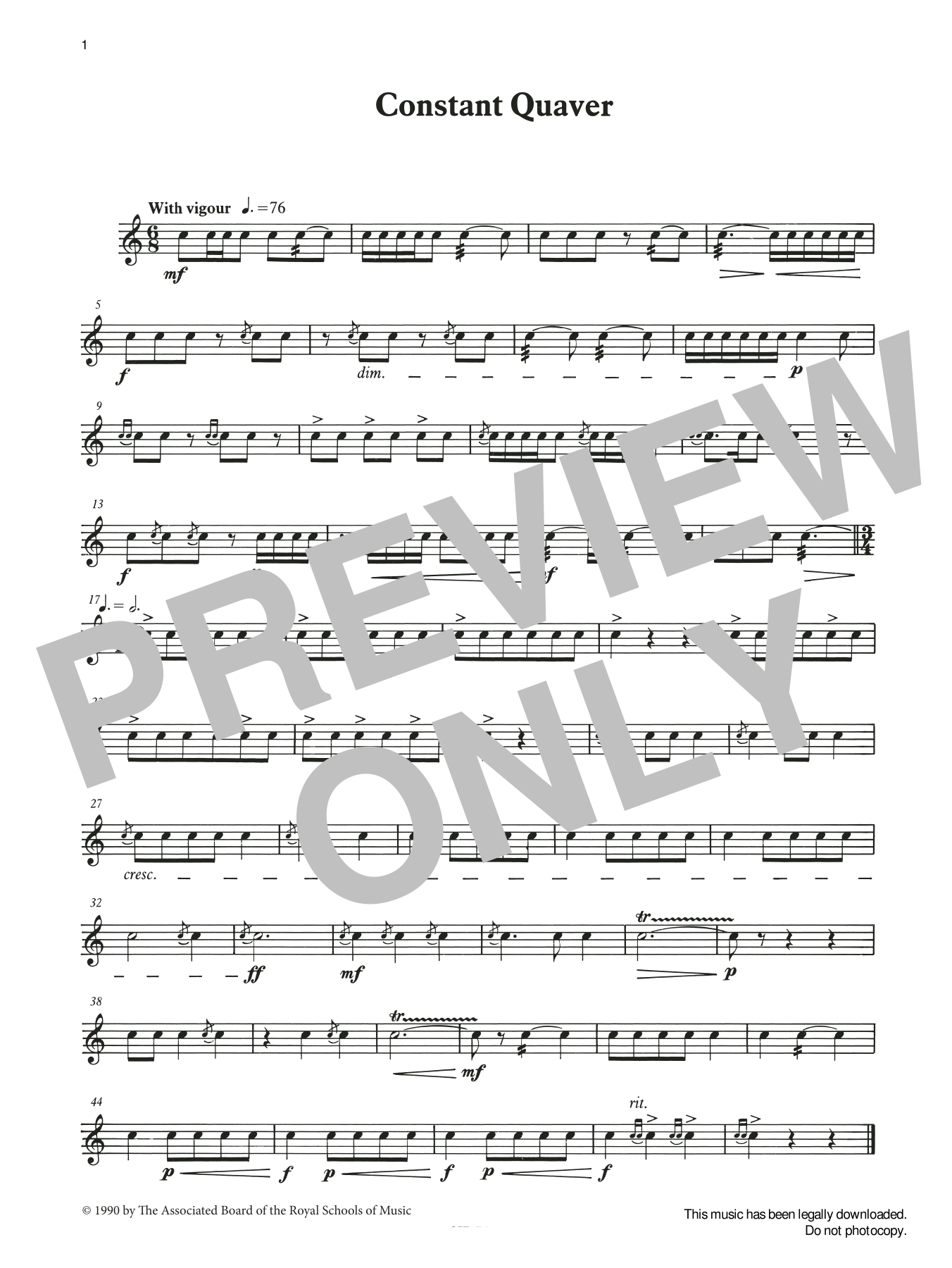 Download or print Ian Wright and Kevin Hathaway Constant Quaver from Graded Music for Snare Drum, Book II sheet music, chords and digital score arranged for Percussion Solo. This Classical score includes 1 page(s).