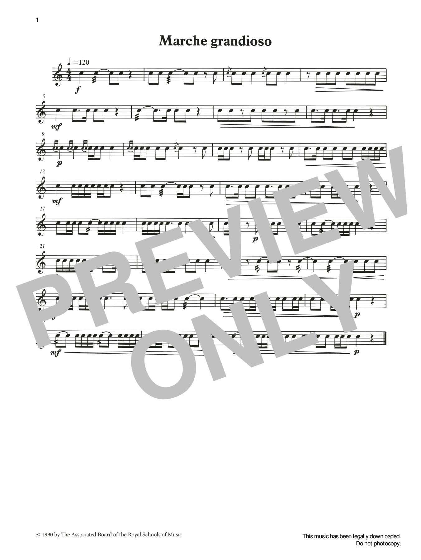 Download or print Ian Wright and Kevin Hathaway Marche grandioso from Graded Music for Snare Drum, Book II sheet music, chords and digital score arranged for Percussion Solo. This Classical score includes 1 page(s).