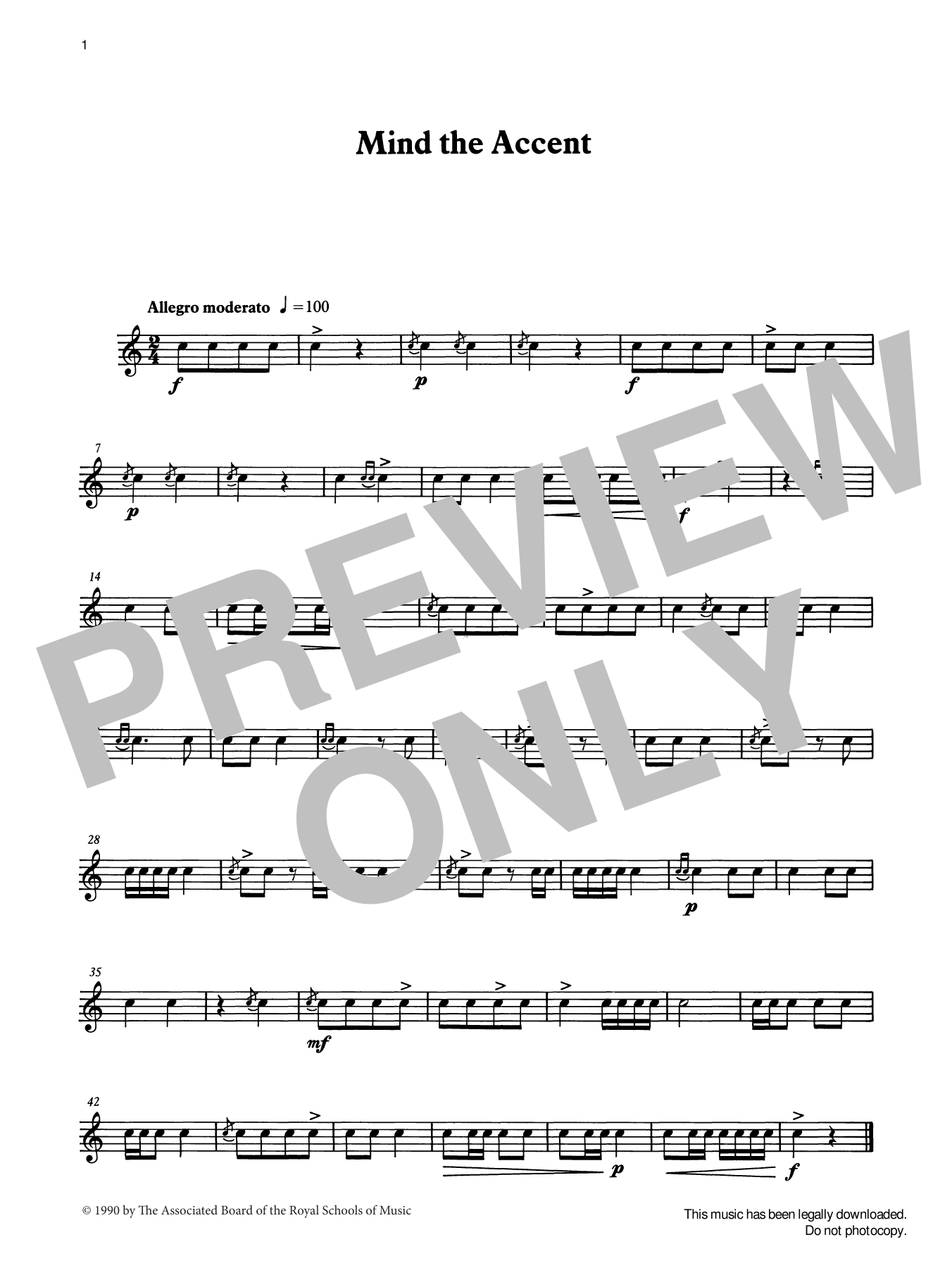 Download or print Ian Wright and Kevin Hathaway Mind the Accent from Graded Music for Snare Drum, Book I sheet music, chords and digital score arranged for Percussion Solo. This Classical score includes 1 page(s).