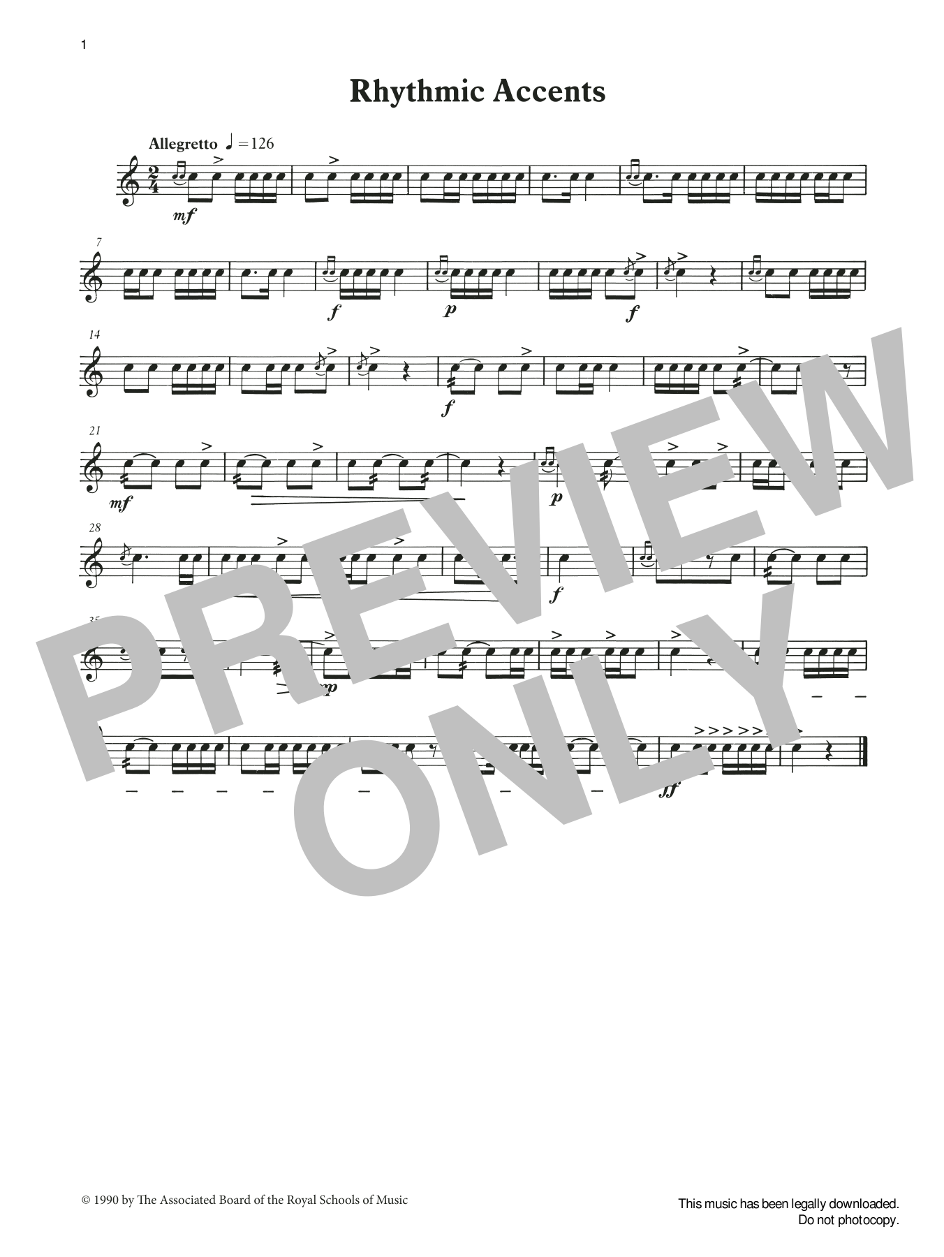Quick facts Rhythmic Accents from Graded Music for Snare Drum, Book II about digital sheet music