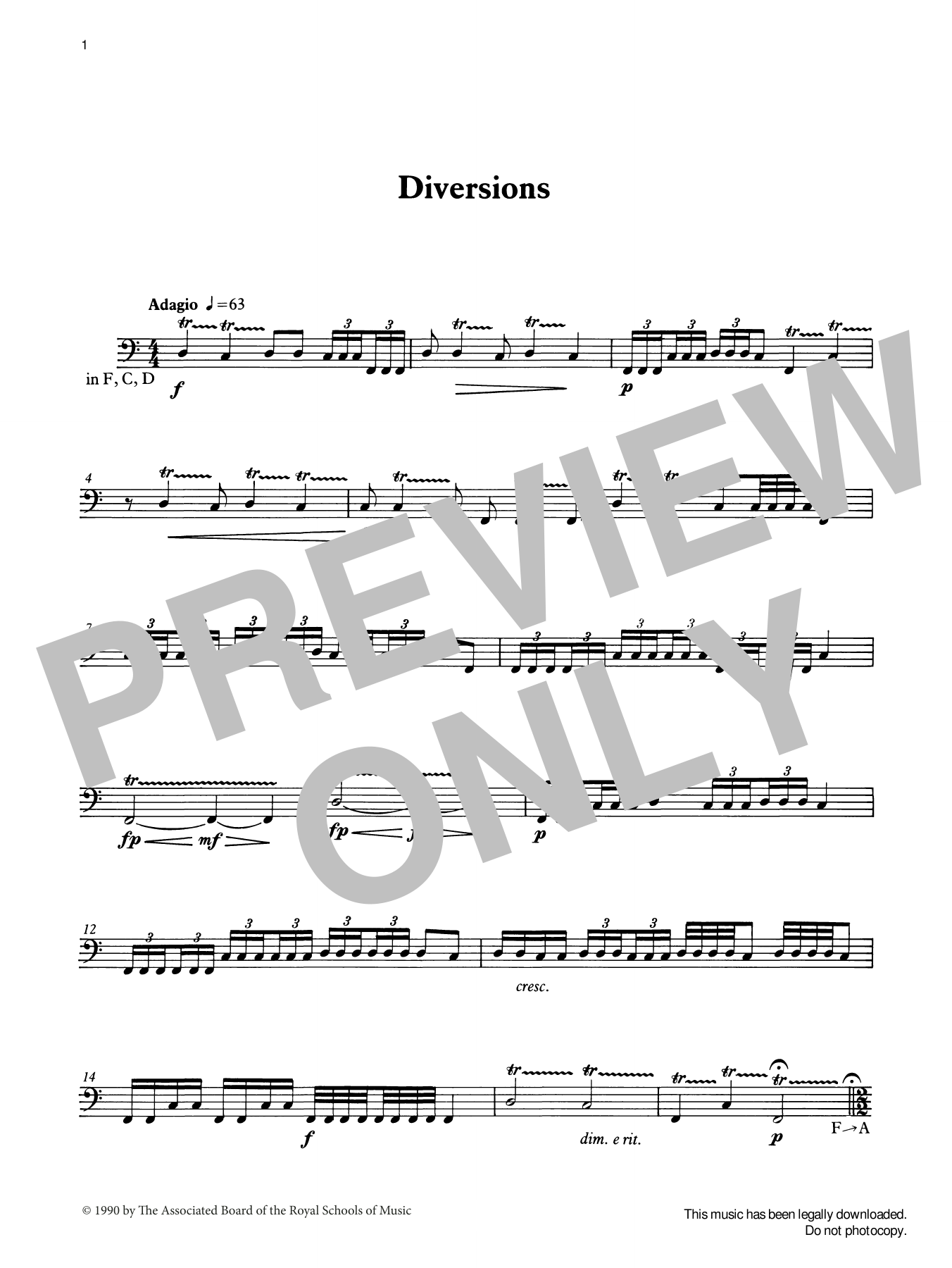 Download or print Ian Wright Diversions from Graded Music for Timpani, Book III sheet music, chords and digital score arranged for Percussion Solo. This Classical score includes 3 page(s).
