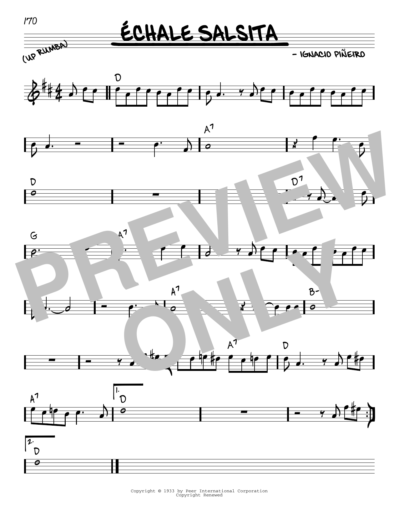 Download or print Ignacio Pineiro Echale Salsita sheet music, chords and digital score arranged for Piano, Vocal & Guitar Chords (Right-Hand Melody). This Jazz score includes 5 page(s).