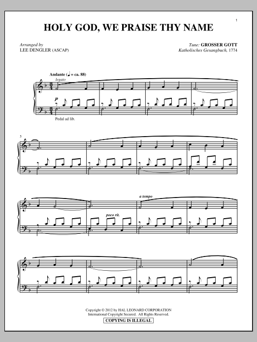 Quick facts Holy God, We Praise Thy Name about digital sheet music