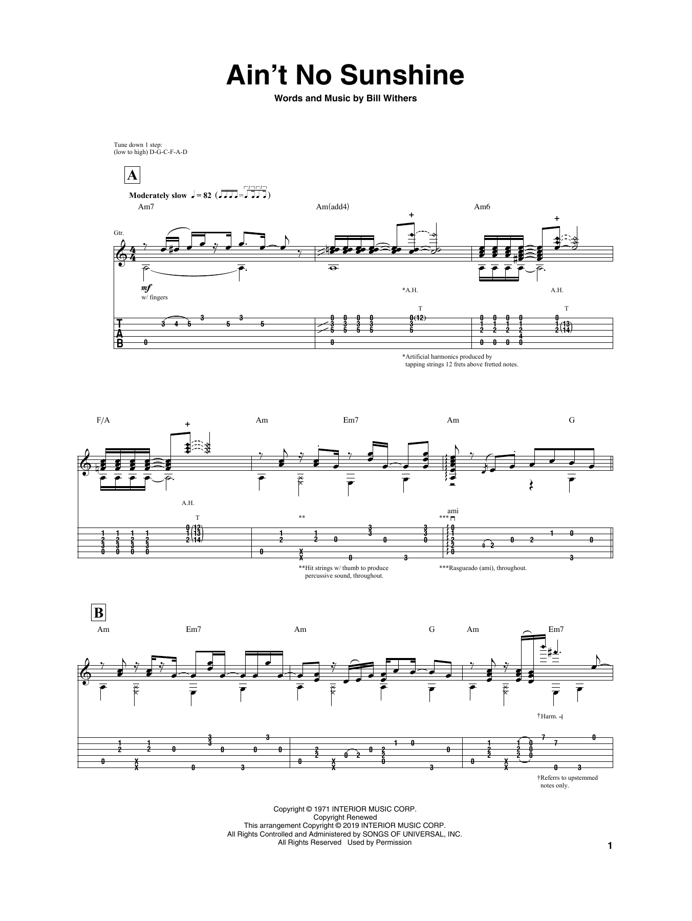 Download or print Igor Presnyakov Ain't No Sunshine sheet music, chords and digital score arranged for Guitar Tab. This Pop score includes 5 page(s).